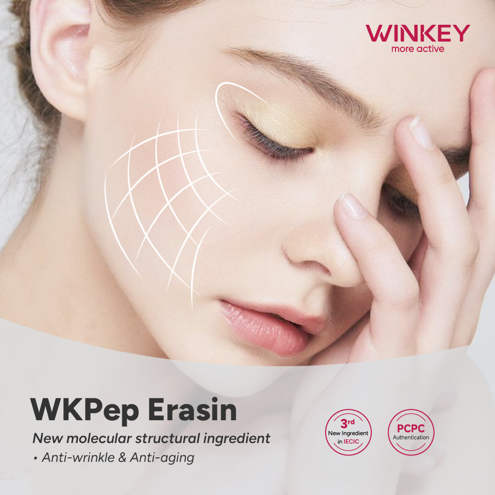 WKPep®Erasin是IECIC清单中的第三个新成分,其商标名称和INCI名称已在PCPC中指定。基于药物开发的理念,Erasin的结构是通过计算机辅助药物设计(CADD)和分子对接算法设计的,旨在开发作用于肌肉m-nAChR表达的活性物质。它不仅抑制肌肉收缩,迅速减少表情纹的出现,还促进胶原蛋白/弹性蛋白的产生,激活皮肤细胞的活力,使肌肤紧致。